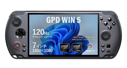 GPD WIN 5 国内正規版が2025年12月27日発売!世界初のAMD Ryzen™ AI Max+ 395搭載ポータブルゲーミングPC。85W TDPでRTX4060級の性能を実現し、着脱式80Whバッテリーや7インチ高輝度ディスプレイ、最大64GBメモリ+4TB SSDなど圧倒的スペック。予約はGPDダイ…